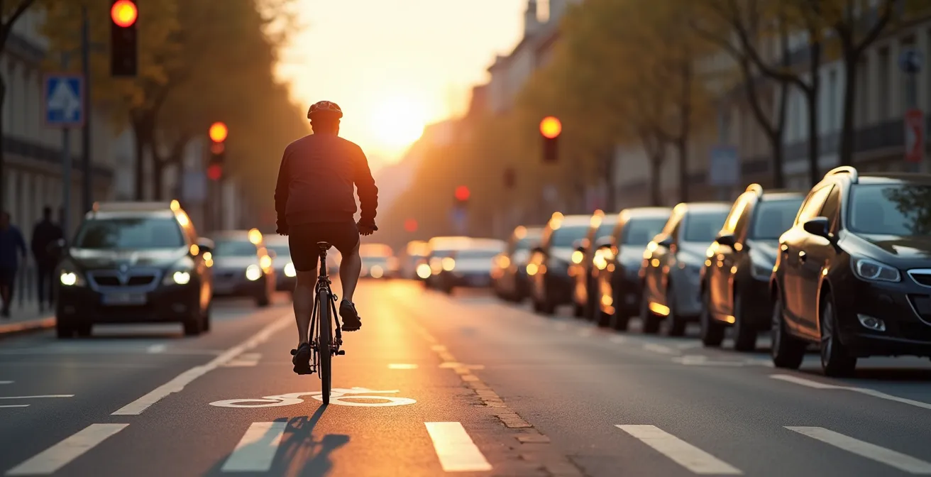 La sonnerie agressive d’un klaxon alors que vous maintenez une distance de sécurité avec les portières. La remarque acerbe d’un conducteur à un feu rouge. Chaque cycliste urbain connaît cette tension, ce sentiment d’illégitimité que certains automobilistes tentent d’imposer. Face à cette pression, le réflexe est souvent de s’excuser, de se tasser, de douter de son bon droit. Beaucoup de guides se contentent de rappeler les obligations du cycliste : porter un casque, avoir des lumières, signaler ses changements de direction. Ces conseils, bien que nécessaires, entretiennent une posture défensive.